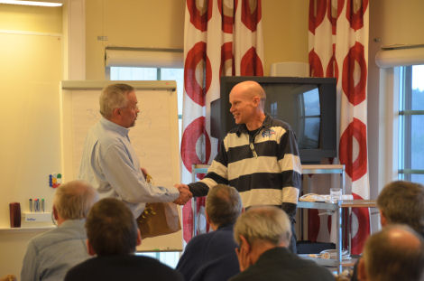 Efter föreläsning blev det dags för Svenska ballongfederationens (SBF) årsmöte. Mötesordförande Lars Ekstedt passade vid mötets slut på att tacka den avgående ordföranden Anders Åkvist.