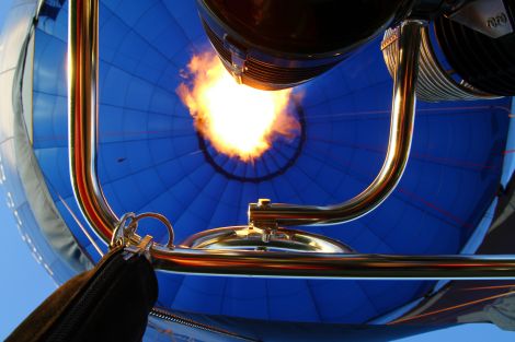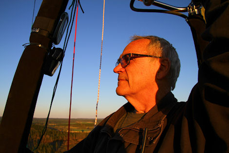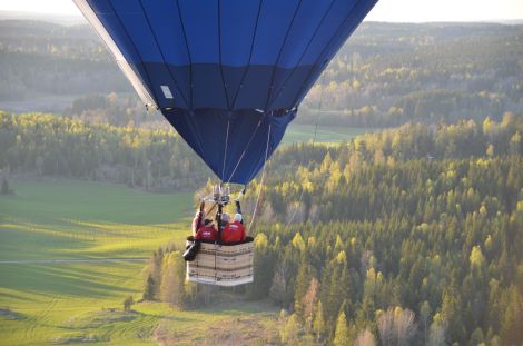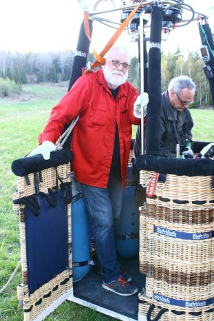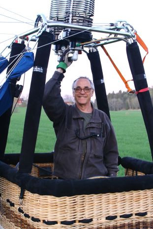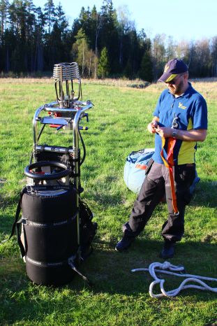 Marcus flyger utan ballongkorg. Hans ballonghölje är så litet att han har bara en stolliknande konstruktion under höljet.