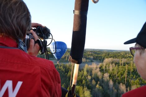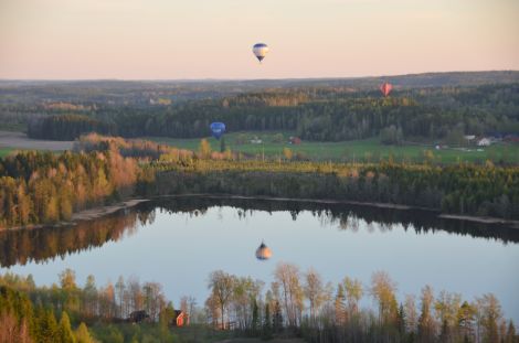 Blev väldigt mycket uppmärksamhet kring den nya klubballongen men klubbens äldre ballong tröstade sig med en vacker spegelbild i Häresjön vi flög över.