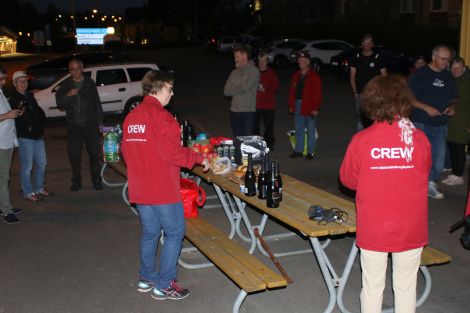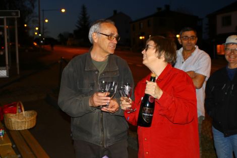 Efter att ballongerna packats ihop blev det återsamling på torget i Högsäter för att fira kvällens lyckade flygningar.