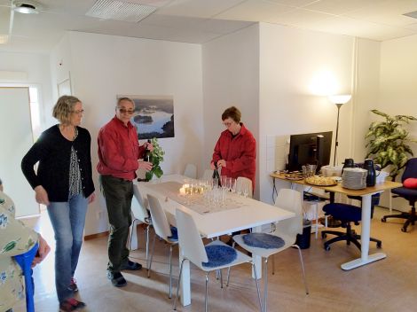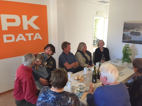 Efter invigningen på torget fortsatte firandet inne i PK Datas lokaler strax intill. Det skålades för den nya ballongens ära och sedan ...