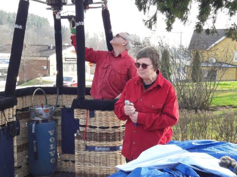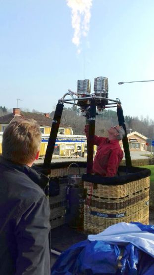 Eva tog högtidligt emot tändaren från Håkan Pekkari. Så var ballong SE-ZLG invigd - eller Dalslands Torp som vi allmänt kommer att kalla den.