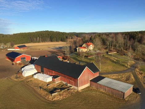 Från ballongen såg vi strax markägarens gård Saxtorp från ovan.
