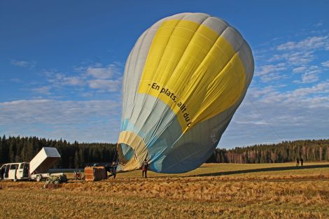 Ballongen fyllde sig alltmer med luft och såg ut att ligga skönt.