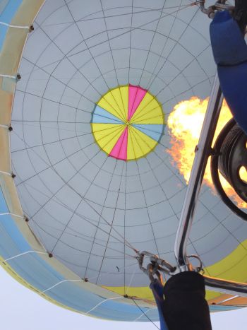 ... när brännarna startades hjälpte den varma luften i ballonghöljet till att resa ballongen upp.