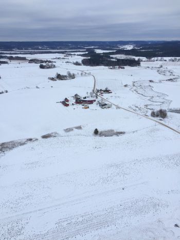 Både väg och vattendrag sågs slingra sig fram i naturen vid Skällsäter.