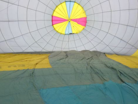 Luften pressades ur ballonghöljet för att lättare kunna packas tillbaka ner i sin säck.