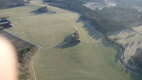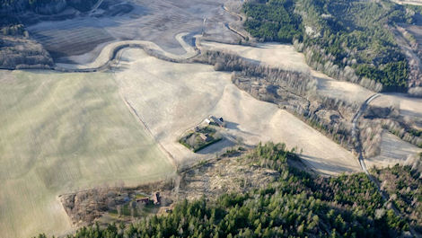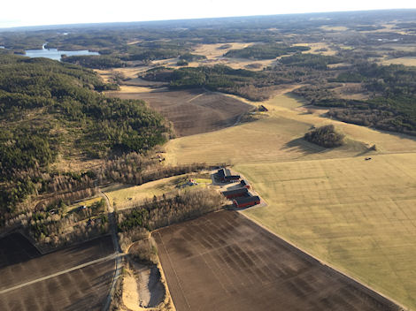 Norrut sågs flera vackra gårdar och även Valboåns vindlingar.