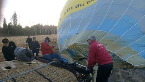 Efter att vi fått vänta en stund på att vindstyrkan skulle avta började vi förbereda ballongen inför avfärd.