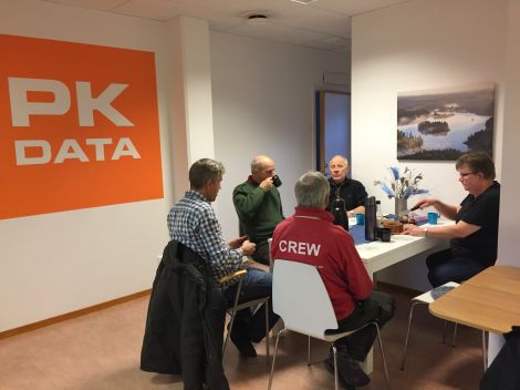 ... få komma in i PK Datas lokaler intill torget för medhavd fika. TACK PK Data för gästfriheten och TACK Gunilla för den goda hembakade sockerkakan. Där blev vi sedan kvar en stund i värmen för spännande lärdomar och gemytlig samvaro.