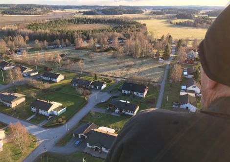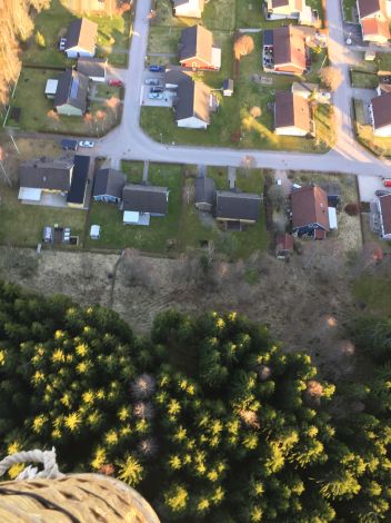 Gunnar i korgen kunde stå där och se sitt hus från ovan.