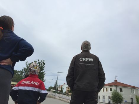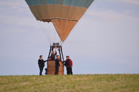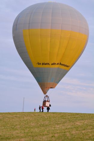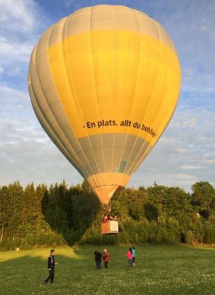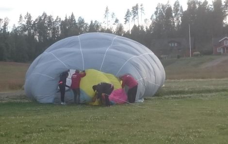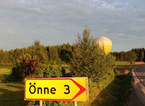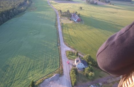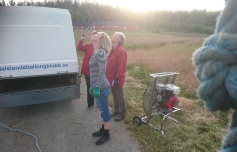 De som inte fick plats i korgen gick av gärdet tillbaka mot följebilarna för att följa ballongens färd som verkade fortsätta mot Rännelanda.