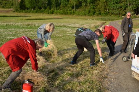 Jodå vid Olsängen såg det väldigt bra ut för att starta. Men först hjälptes man åt att rensa undan det lösa torra höet så att brännaren senare inte skulle råka orsaka en eldsvåda där.