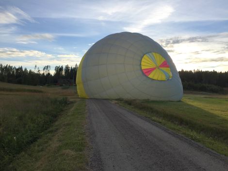 ... ballonghöljet lades ner på vägen.