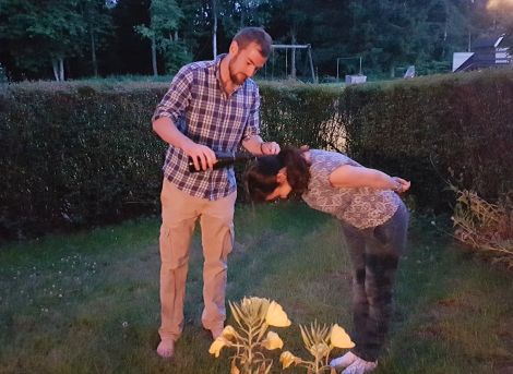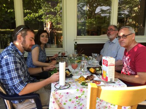 Andreas och Rita från CBC (Chalmers Ballong Corps) samt Kenneth och Eva Olsson från Dalslands ballongklubb samlades idag hemma hos Nisse Kjellén inför flygning i Skövde-trakten. Ny sed att ta med hem till Dalsland - god mat inför flygningen!!! Andreas är blivande pilot, Kenneth blivande instruktör och Nisse chef i flygskolan - 3 bra ingredienser för skolflygning ikväll.
