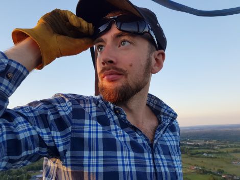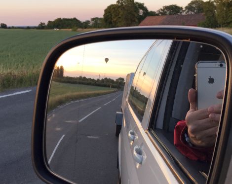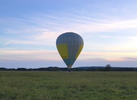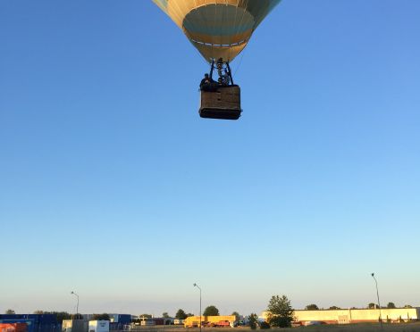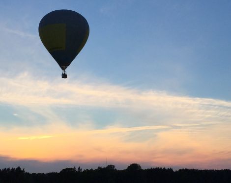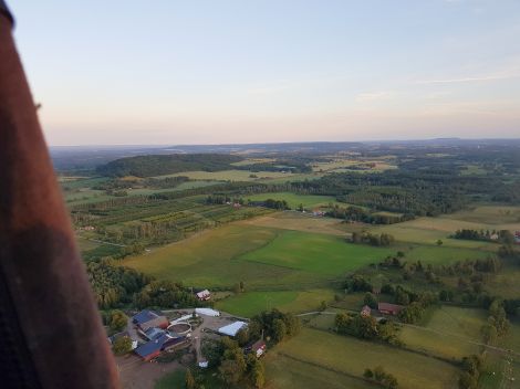 Uppe i ballongen såg man det vackra landskapet under men ...