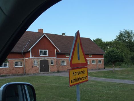 Från följebilen sågs - förutom vackert landskap och byggnader - lite skrämmande varningsskyltar men ...