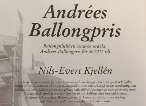 Nisses gästfrihet och generositet är enorm, plus alla hans andra goda kvalitéer. I hans vardagsrum fanns till exempel diplomet från Andrées Ballongpris 2017 som Ballongklubben Andrée mycket välförtjänt tilldelat Nisse nu i veckan.