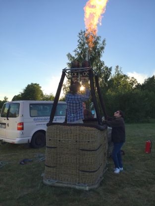 Flygläget verkade gynnsamt och intill Ranstadsverket riggades ballongens olika delar samman och Andreas gjorde bland annat brännartest för att kolla att gasol, brännare, slangar och kopplingar fungerade.