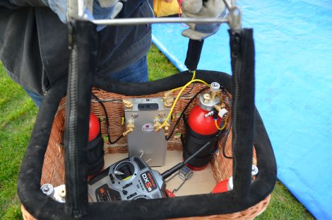 Ballongkorgen bars därifrån av en person. Vid vägning innan flygförsöket vägde korg och brännare ca 8 kg och ballonghöljet lika mycket.