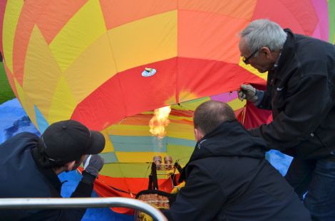 Brännarna startades och lågorna riktades in i ballonghöljet.