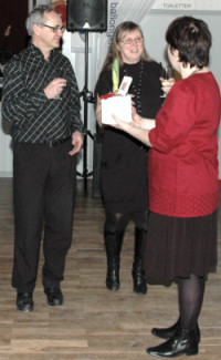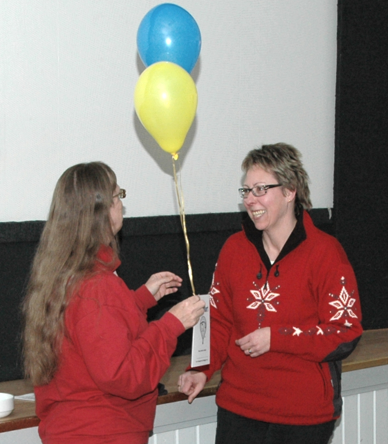 Dalslands ballongklubb firade 5-årsjubileum 6 december med dans, filmvisning och tal mm i Högsäters bygdegård. Kenneth och Eva Olsson överraskades av Susanne Jacobsson med uppskattande ord och blomma.