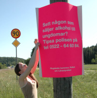 Informationskampanjen som pågår just nu i västsverige om att stoppa langningen av alkohol görs hos oss i samarbete mellan Färgelanda kommun, Länstyrelsen och Polisen. Dalslands ballongklubb har hjälpt till att sätta upp affischer i norra kommundelen och i mitten på månaden ska de tas ner igen. Ger det bara gott resultat nu i skolavslutningstider så har det varit värt allt slit för att få affischerna att sitta säkert. Vill du tipsa polisen är telefonnumret 0522-64 60 84.