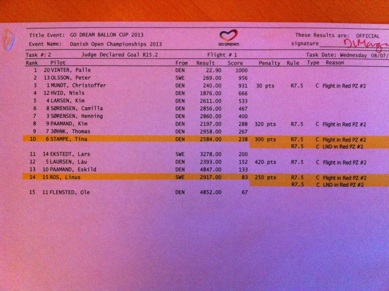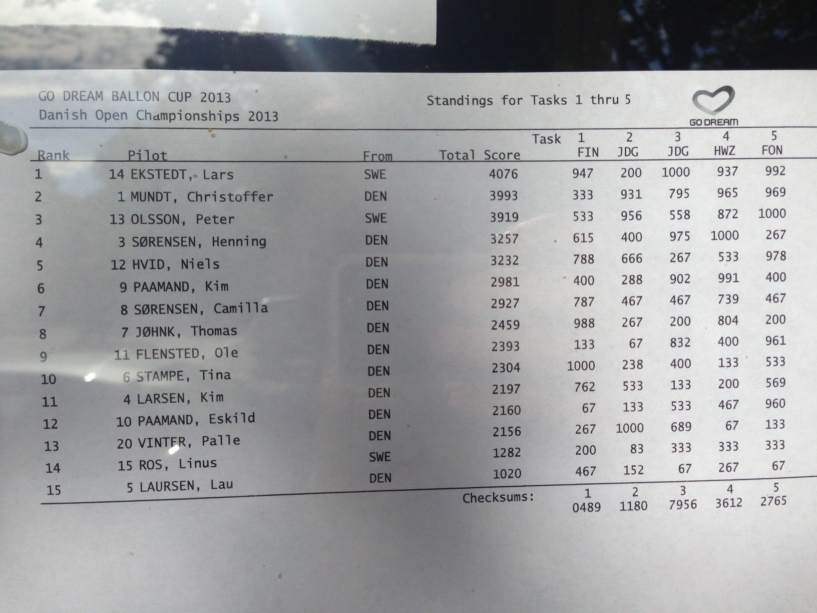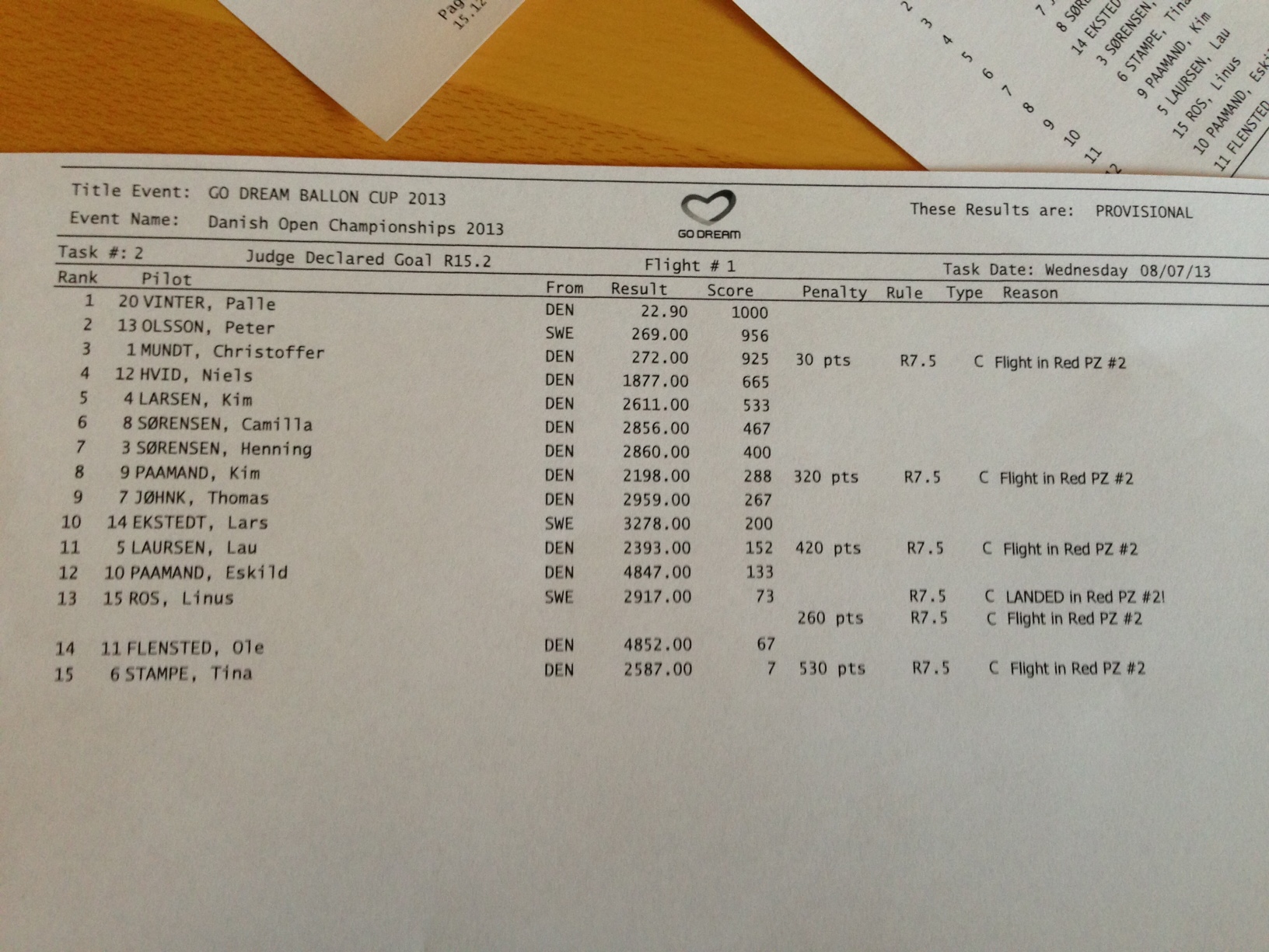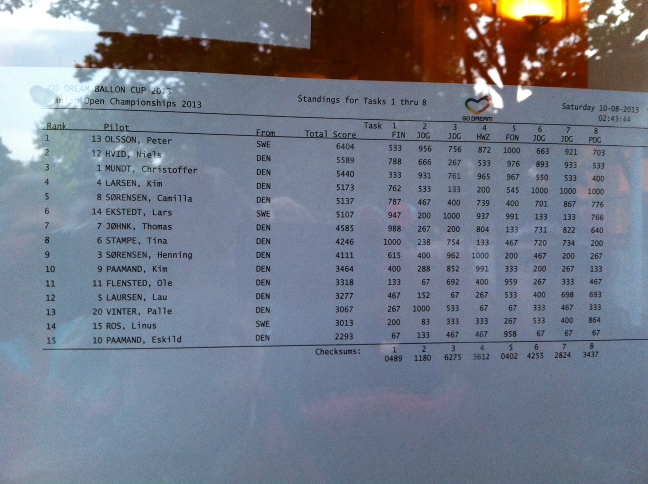 Fredag 13/9 (sista flygdagen) kl. 8.30 Just nu efter 13 deltävlingar är Peter på plats 13, Lars 45 och Simon 50. Vår danske vän Christoffer Mundt har klättrat upp till 8:e plats. Leder gör nu Stefan Zeberu, SUI.