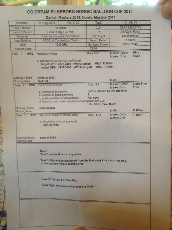 Lag Peter har anlänt till tävlingscentrum och har checkat in. Nu pågår riggning av ballong och ompackning till tävlingsläge, exempelvis skall nummerlapparna (nummer 15) sättas på korgen. Klockan 18.00 är det General briefing, inledande tävlingsgenomgång, och invigning. Vi har hunnit hälsa på lag Janne och lag Lars samt vinkat till lag Thomas. Det kommer en regnskur nu och då men det ser lite ljusare ut inför morgondagen. Nu börjar det!! Heja, heja!!